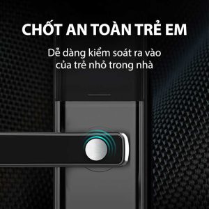 Điểm đặc biệt nổi bật nhất trên bộ khoá vân tay Kitos G900 phải kể tới đó là chốt an toàn trẻ em. Đây là một thiết kế vô cùng thông minh và sáng tạo giúp bạn đảm bảo an toàn cho trẻ nhỏ trong gia đình, không để chúng tự do mở khoá từ bên trong nhà khi không được phép. Với chốt an toàn này, bạn cần bấm chốt đồng thời gạt tay thì chốt khoá mới mở ra. Trong chế độ thông thường, trẻ nhỏ hay những ai không sử dụng chốt bấm sẽ không thể gạt tay để mở khoá từ bên trong nhà.