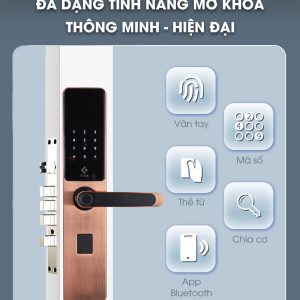 ►Chức năng : Vân tay, thẻ từ, mã số, chìa cơ, app bluetoothMở rộng : Remote bấm mở từ xa