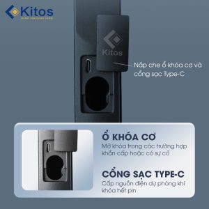 Kitos AL60 Pro còn được trang bị cổng sạc USB khẩn cấp nằm bên ngoài khóa. Trong trường hợp khóa hết pin, bạn có thể sử dụng pin dự phòng hoặc cổng sạc ngoài để mở khóa mà không cần lo lắng bị khóa ngoài. Đây là giải pháp dự phòng vô cùng tiện lợi, đảm bảo khóa luôn hoạt động trong mọi hoàn cảnh.